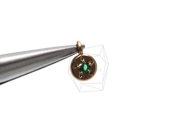PDT-1820-MG/2pcs,Mini Cubic Zirconia Round Pendant /5mm x 7mm/Matte Gold Plated Over Brass
