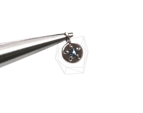 PDT-1828-MR/2pcs,Mini Cubic Zirconia Round Pendant /5mm x 7mm/Matte Rhodium Plated Over Brass