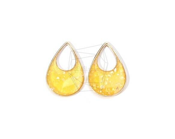 PDT-1750-G/2PCS/Epoxy Tear Drop Pendant/12mm X 25mm/Gold Plated over Brass