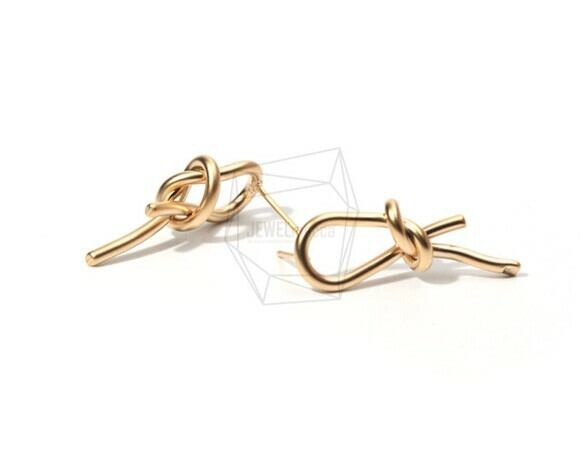 ERG-719-MG/2PCS/Knot Post Earring/15mm X 30mm/Matte Gold Plated Over Brass