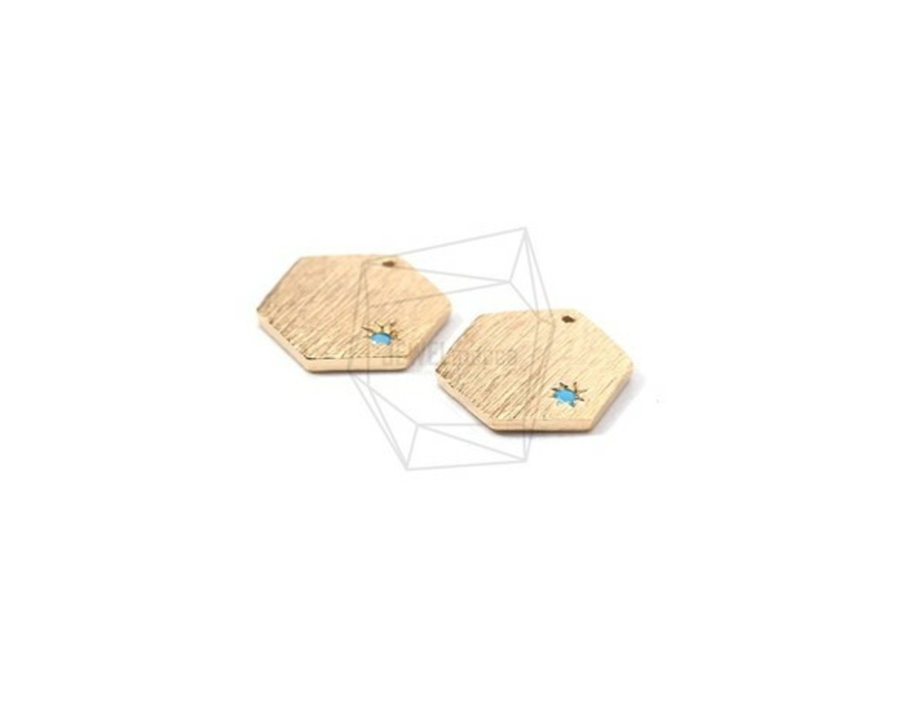PDT-1831-G/2PCS/Brushed Hexagon Turquoise Pendant/10mm X 11mm/Gold Plated Over Brass