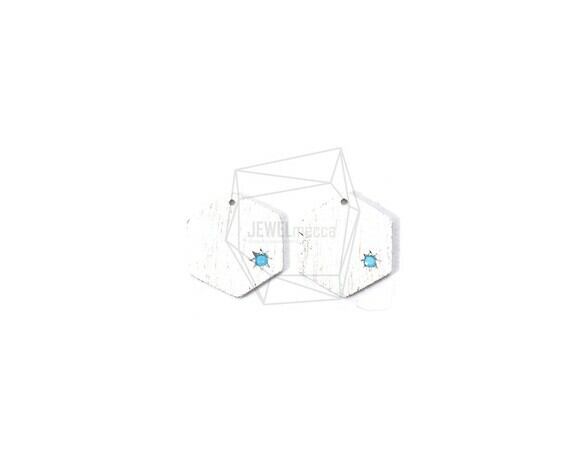 PDT-1831-R/2PCS/Brushed Hexagon Turquoise Pendant/10mm X 11mm/Rhodium Plated Over Brass