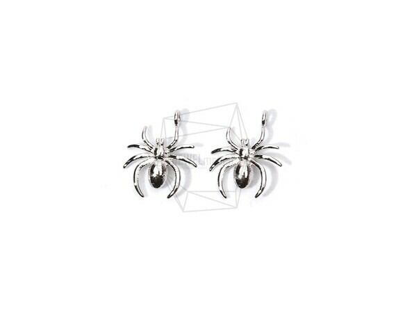 PDT-1837-R/2PCS/Spider Pendant/12mm X 13mm/Rhodium Plated Over Brass