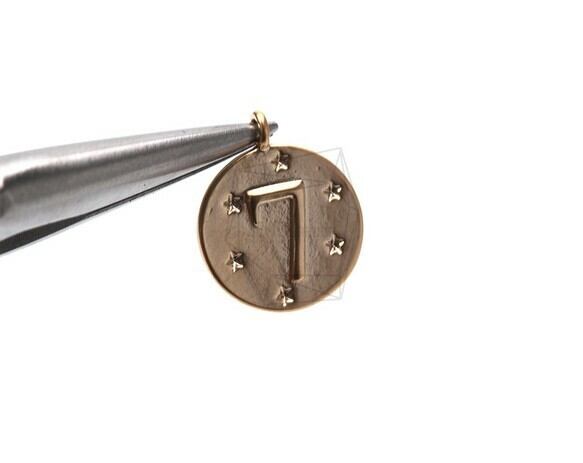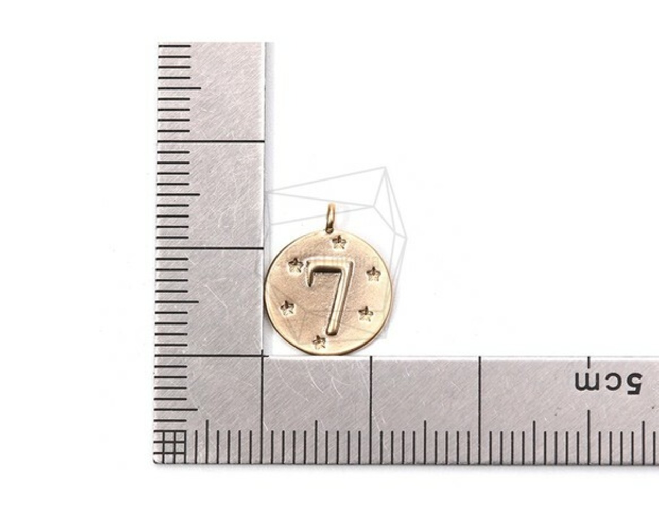 PDT-1839-MG/2PCS/Number 7 Carved Circle Disc Pendant/12mm X 14mm/Matte Gold Plated Over Brass