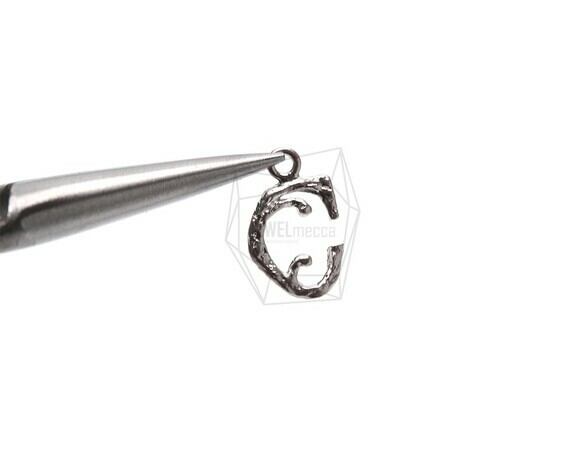 PDT-1843-MR/2Pcs-Alphabet Initial,Letter pendant/ 10mm x 12mm /Matte Rhodium Plated over brass