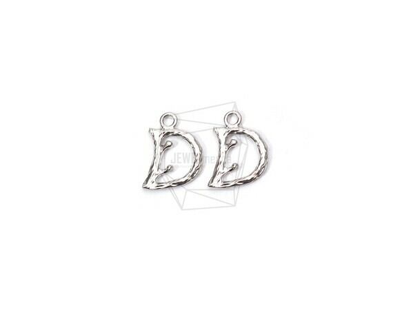 PDT-1844-MR/2Pcs-Alphabet Initial,Letter pendant/ 10mm x 12mm /Matte Rhodium Plated over brass