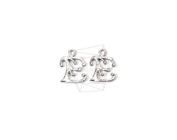 PDT-1845-MR/2Pcs-Alphabet Initial,Letter pendant/ 10mm x 12mm /Matte Rhodium Plated over brass