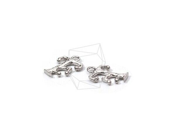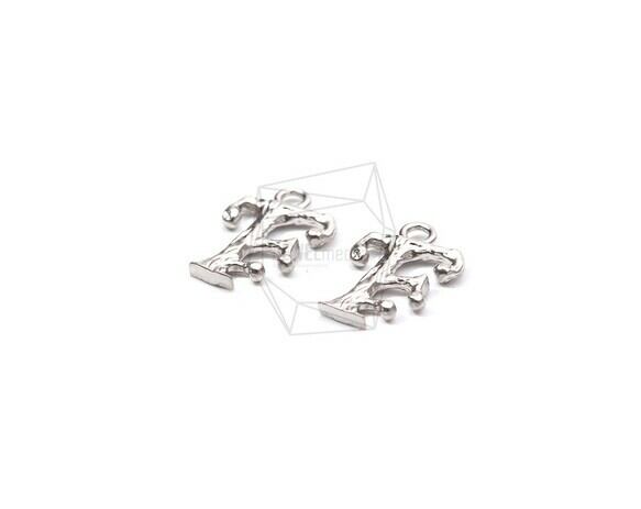PDT-1846-MR/2Pcs-Alphabet Initial,Letter pendant/ 8mm x 12mm /Matte Rhodium Plated over brass