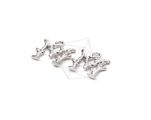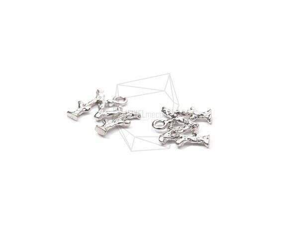 PDT-1853-MR/2Pcs-Alphabet Initial,Letter pendant/ 10mm x 12mm /Matte Rhodium Plated over brass