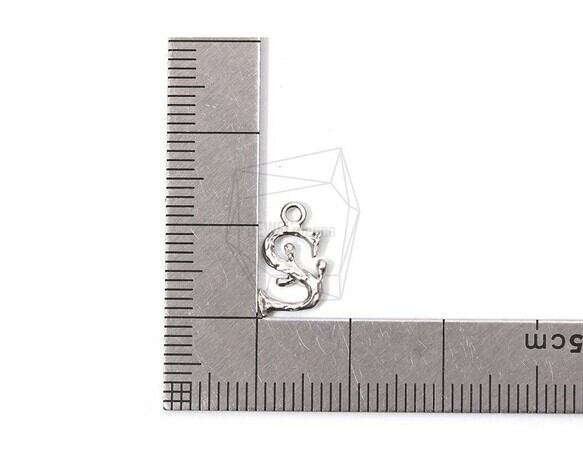 PDT-1859-MR/2Pcs-Alphabet Initial,Letter pendant/ 8mm x 12mm /Matte Rhodium Plated over brass