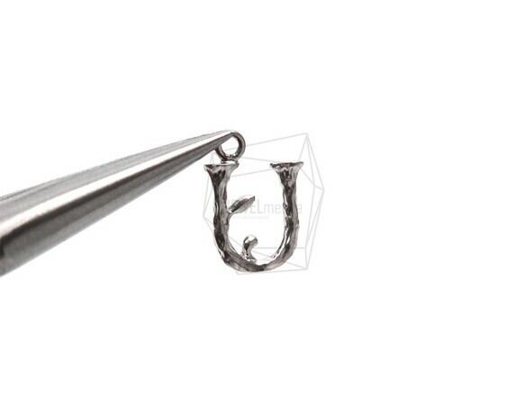 PDT-1861-MR/2Pcs-Alphabet Initial,Letter pendant/ 8mm x 12mm /Matte Rhodium Plated over brass
