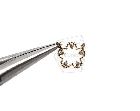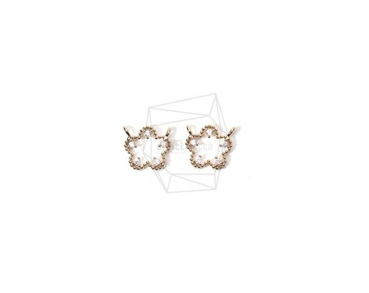 PDT-1872-G/2PCS/Cubic Zirconia Balls Flower Pendant/9mm X 9mm/Gold Plated Over Brass