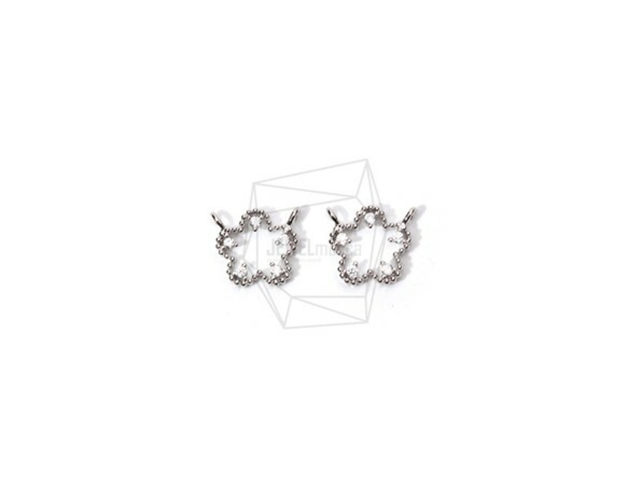 PDT-1872-R/2PCS/Cubic Zirconia Balls Flower Pendant/9mm X 9mm/Rhodium Plated Over Brass