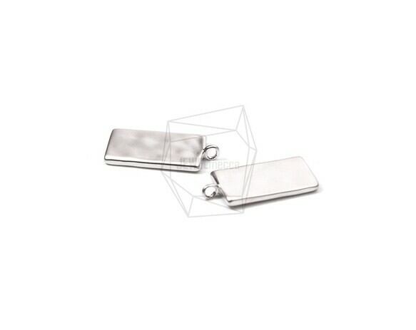 PDT-1877-MR/2PCS/Hammered Rectangle Pendant/7mm X 16mm/Matte Rhodium Plated Over Brass