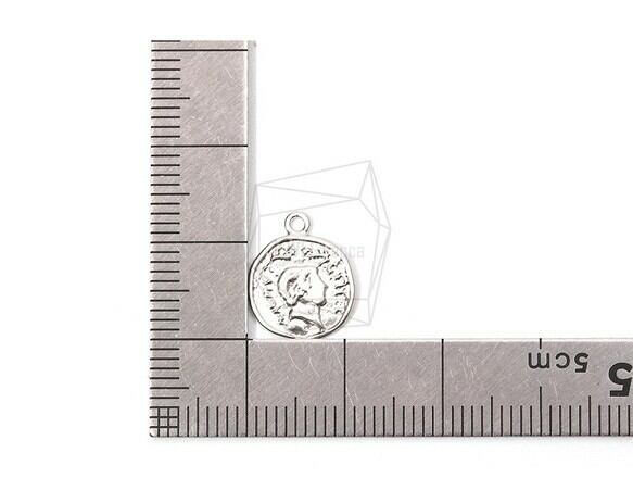 PDT-1879-MR/2PCS/Hammered Coin Pendant/10mm X 13mm/Matte Rhodium Plated Over Brass
