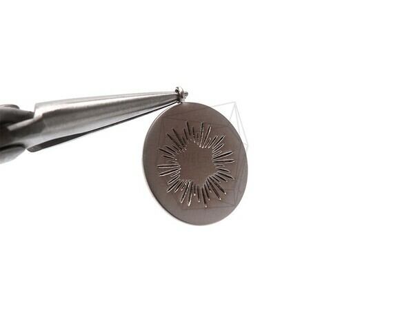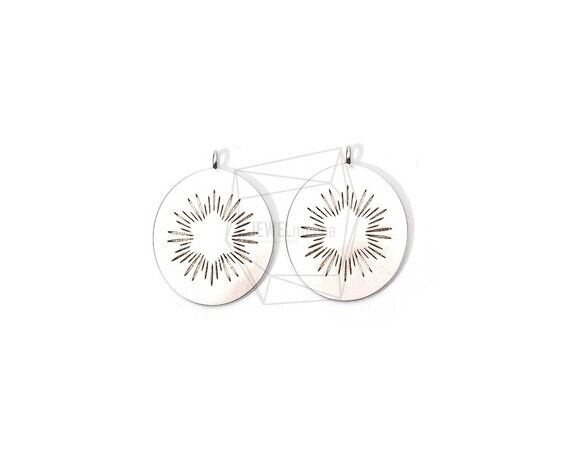 PDT-1881-MR/2PCS/Round Shiny Star Pendant/15mm X 20mm/Matte Rhodium Plated Over Brass