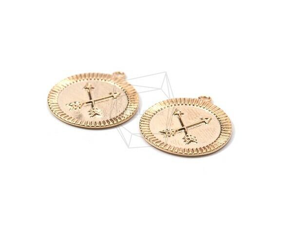 PDT-1882-MG/2PCS/Round Double Arrow Pendant/16mm X 18mm/Matte Gold Plated Over Brass