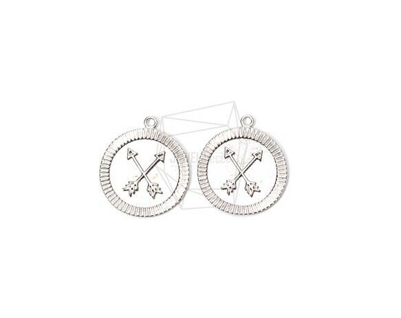 PDT-1882-MR/2PCS/Round Double Arrow Pendant/16mm X 18mm/Matte Rhodium Plated Over Brass