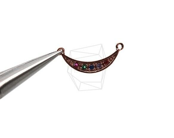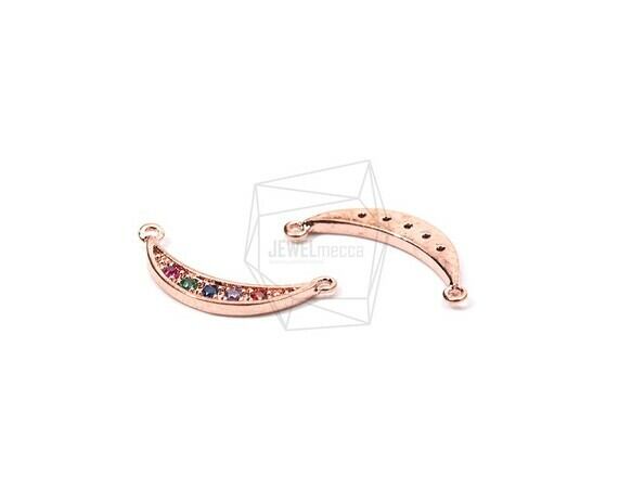 CNT-184-PG/2PCS/CZ Crescent Moon Connector/20mm X 9mm/Pink Gold Plated Over Brass