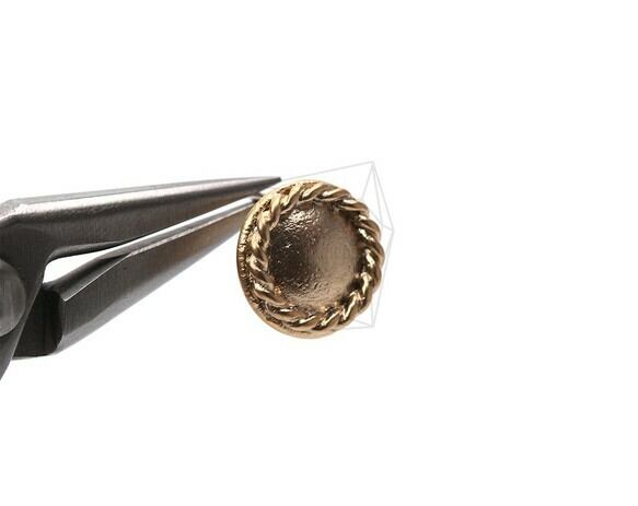 ERG-909-MG/2PCS/Round Rope Edge Post Earrings/13mm X 13mm/Matte Gold Plated Over Brass/Silver Post