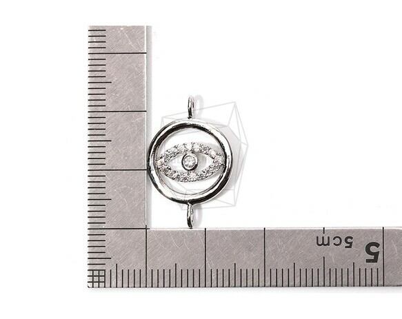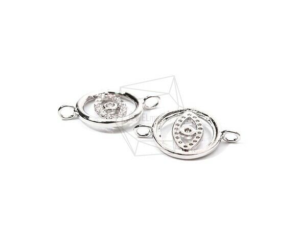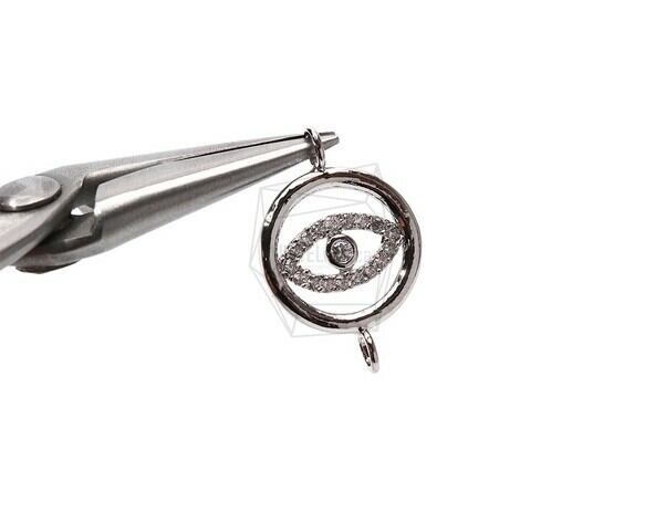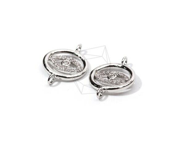 PDT-1887-R/2PCS/CZ Round Evil Eye Pendant/13mm X 22mm/Rhodium Plated Over Brass