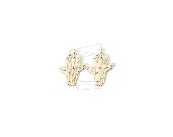 PDT-1905-MG/2PCS/Cute Cactus Pendant/12mm X 18mm/Matte Gold Plated Over Brass