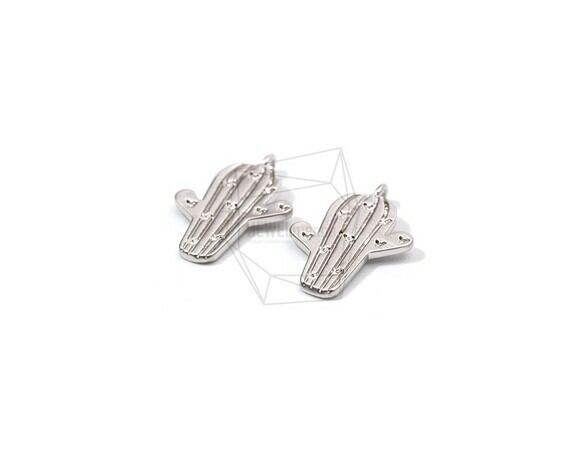 PDT-1905-MR/2PCS/Cute Cactus Pendant/12mm X 18mm/Matte Rhodium Plated Over Brass