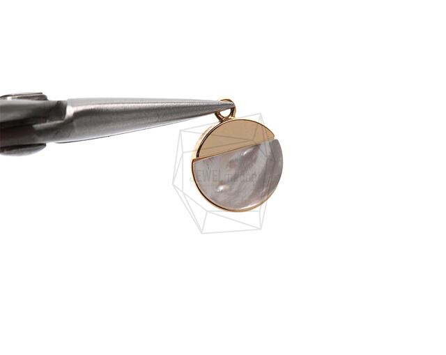 PDT-1907-G/2PCS/Round Mother of Pearl Pendant/12mm X 15mm/Gold Plated Over Brass