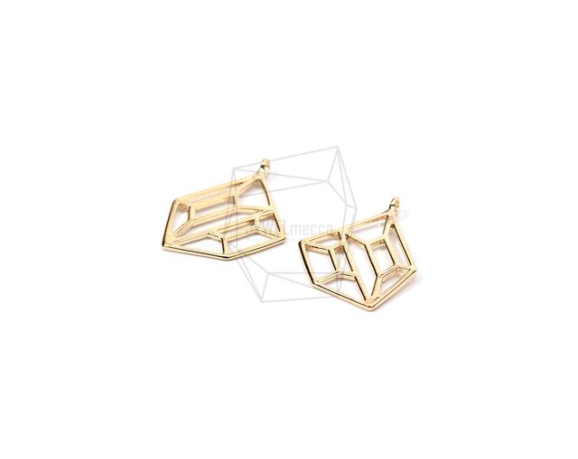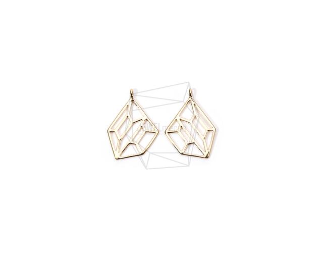 PDT-1913-G/2PCS/Engraving Kite Pendant/12mm X 16mm/Gold Plated Over Brass