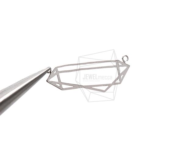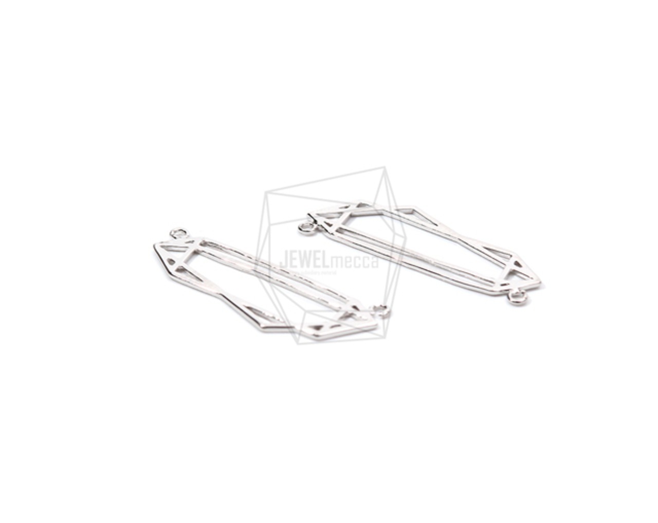 PDT-1914-R/2PCS/Engraving Diamond Pendant/27mm X 10mm/Rhodium Plated Over Brass