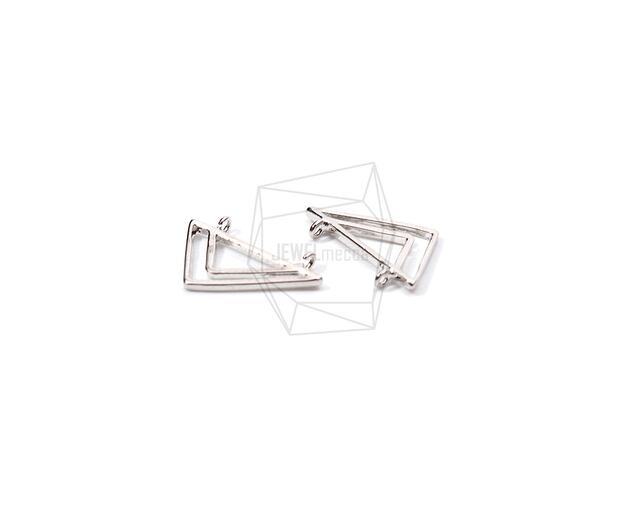 PDT-1916-R/2PCS/Double Triangle Pendant/15mm X 9mm/Rhodium Plated Over Brass