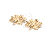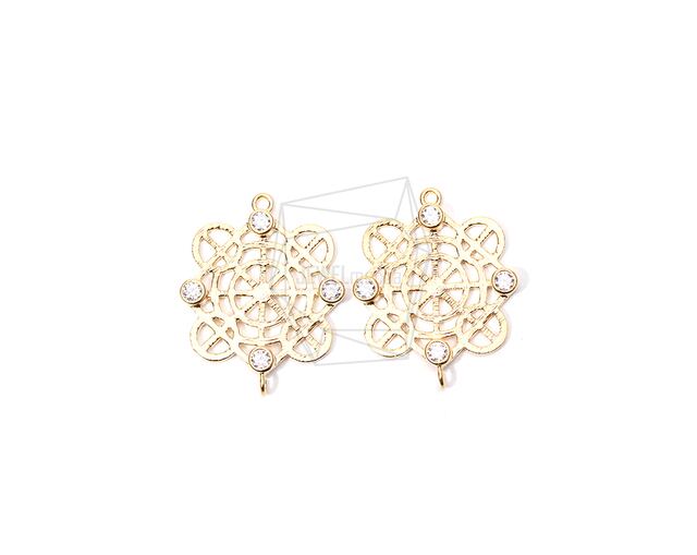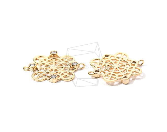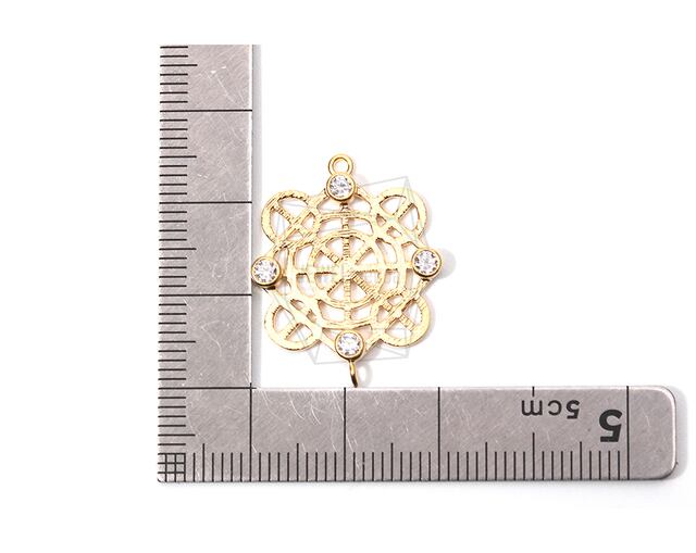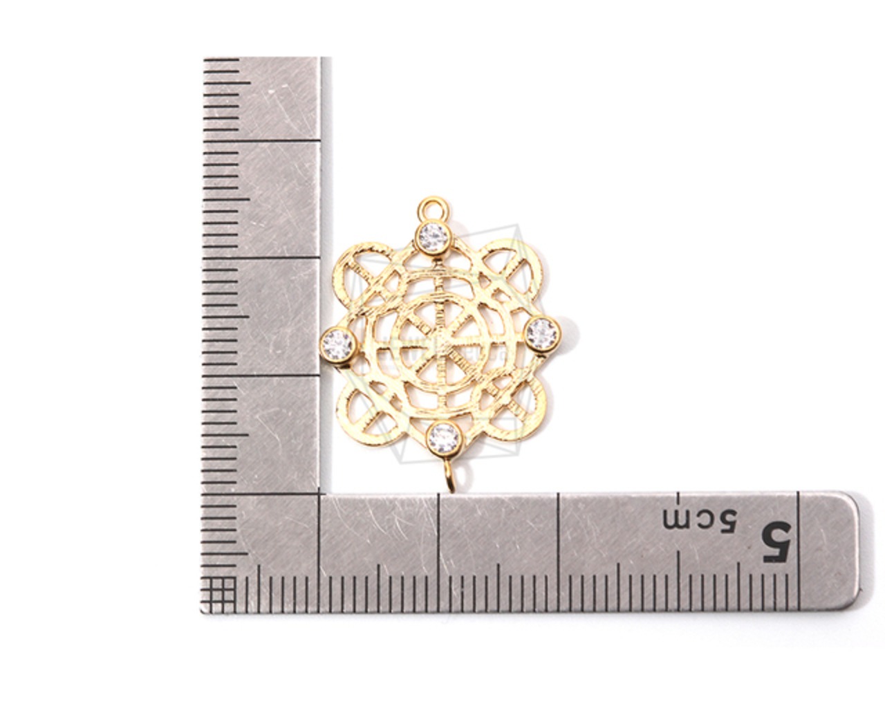 PDT-1921-MG/2PCS/CZ Round Pattern Pendant/20mm X 25mm/Matte Gold Plated Over Brass