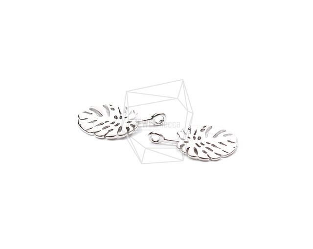 PDT-1923-R/2PCS/Palm Leaf Pendant/10mm X 17mm/Rhodium Plated Over Brass