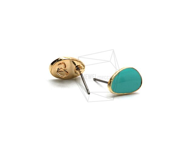ERG-943-G/4PCS/Epoxy oval Earring Post/8mm X 12mm/Gold Plated over Brass,Titanium post