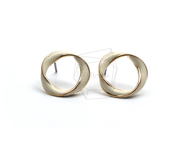 ERG-946-G/4PCS/Epoxy Round Earring Post/12mm X 12mm/Gold Plated over Brass,Titanium post