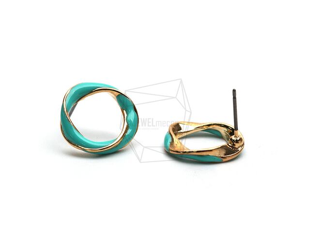ERG-949-G/4PCS/Epoxy Round Earring Post/12mm X 12mm/Gold Plated over Brass,Titanium post