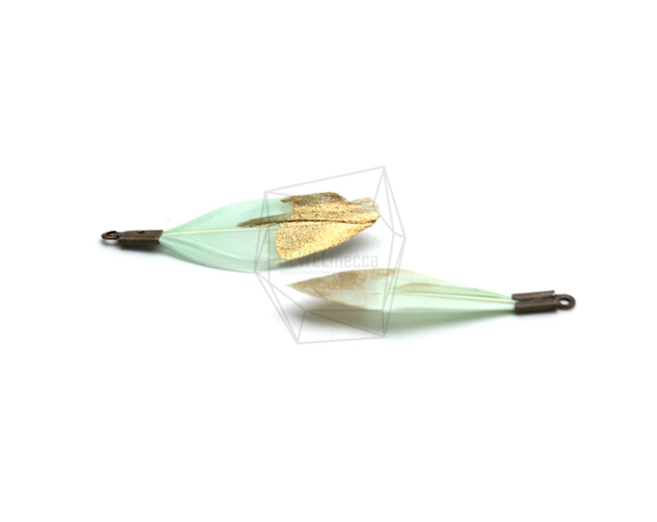 BSC-622-G/5pcs/Gold Dipped Mint Color Duck Feather Charm/10mm x 30mm