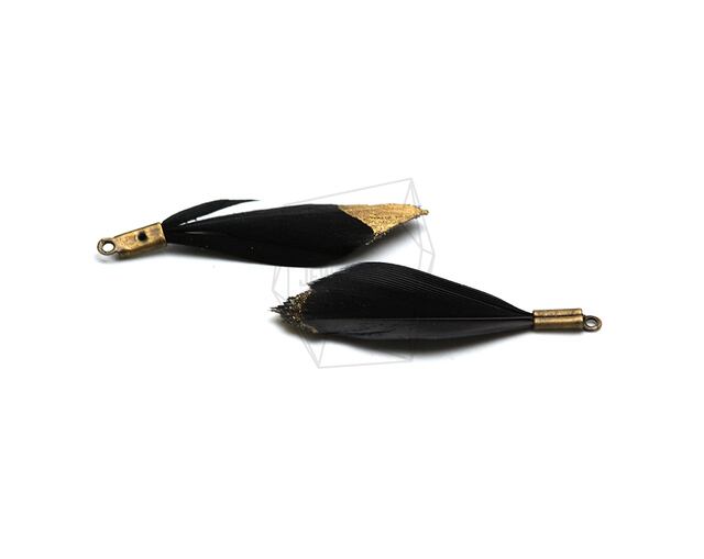 BSC-623-G/5pcs/Gold Dipped black Color Duck Feather Charm/10mm x 30mm