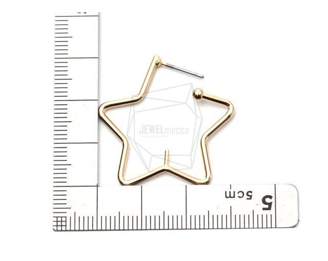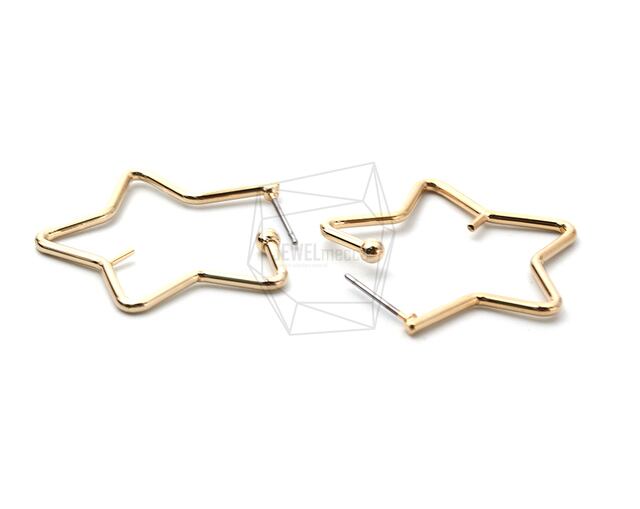 ERG-957-G/2PCS/Open Star Earrings Post/32mm X 32mm/Gold Plated Over Brass,Titanium post