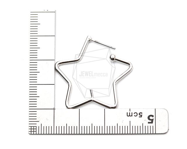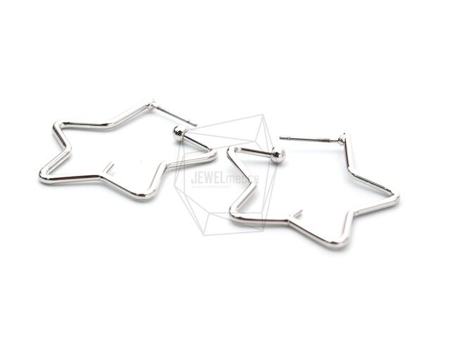 ERG-957-R/2PCS/Open Star Earrings Post/32mm X 32mm/Rhodium Plated Over Brass,Titanium post