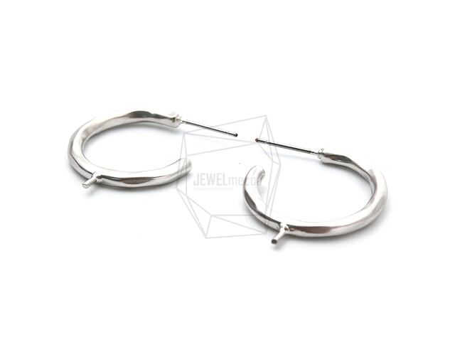 ERG-961-MR/2PCS/Hammered Round Earrings Post/25mm X 27mm/Matte Rhodium Plated Over Brass,Titanium post