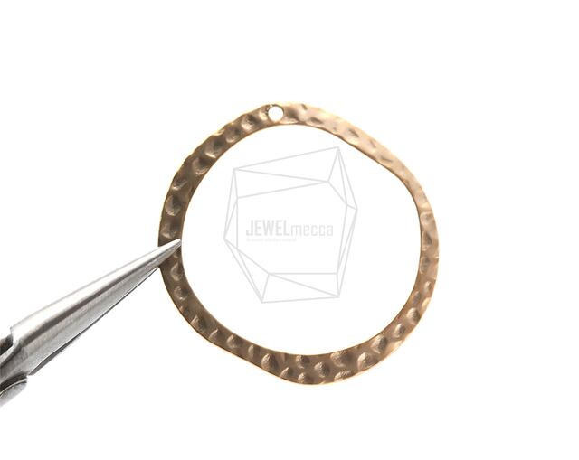 PDT-1944-MG/2PCS/Hammered Round Pendant/34mm X 35mm/Matte Gold Plated Over Brass