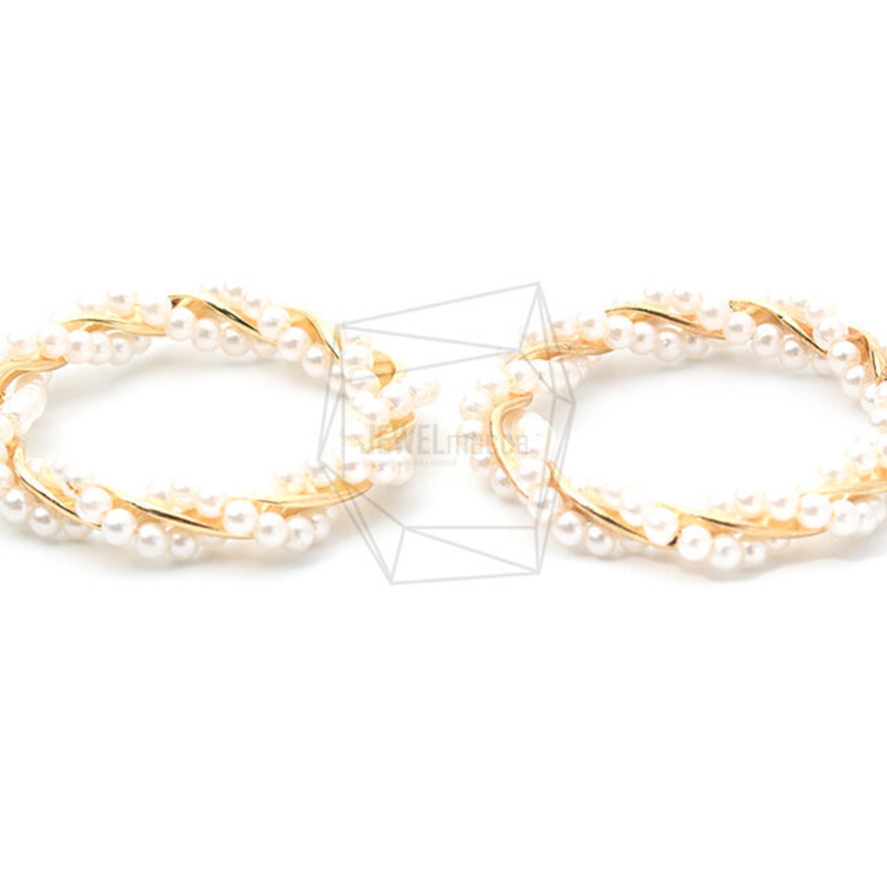 PEA-063-C/2PCS/Round Shaped With Pearls/Approx.45mm x 45mm/Gold Plated Over Brass,imitation Pearls