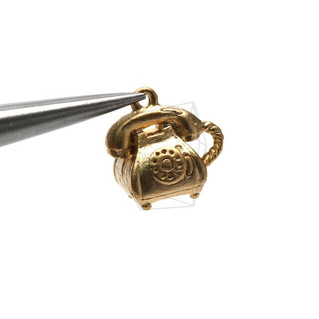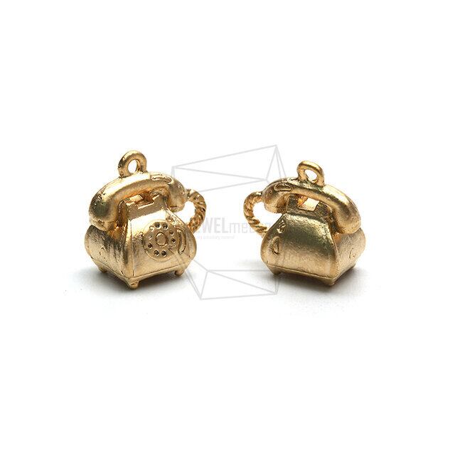 PDT-1939-MG/4PCS/Mini Telephone Pendant/14mm X 13mm/Matte Gold Plated Over Brass