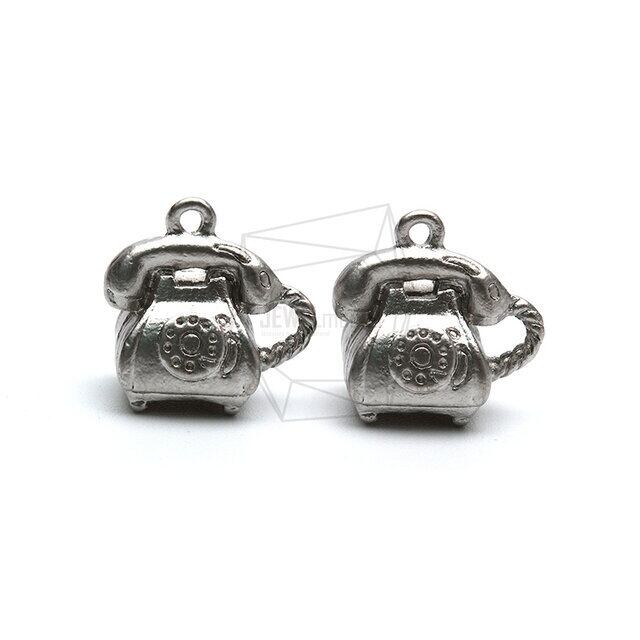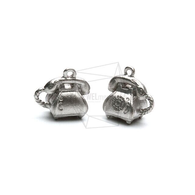 PDT-1939-MR/4PCS/Mini Telephone Pendant/14mm X 13mm/Matte Rhodium Plated Over Brass