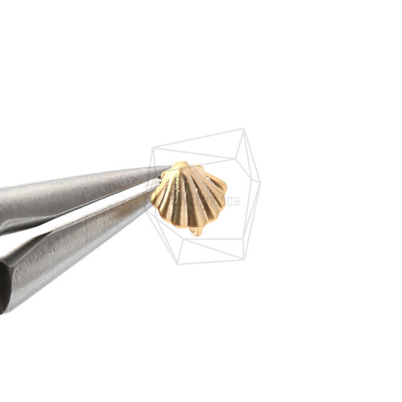ERG-967-MG/2PCS/Sea Shell Post Earring/8mm X 8mm/Matte Gold Plated Over Brass,Silver Post