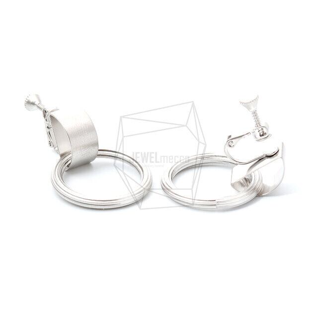 ERG-975-MR/2PCS/Ring Drop Clips Earring/25mm X 35mm/Matte Rhodium Plated Over Brass