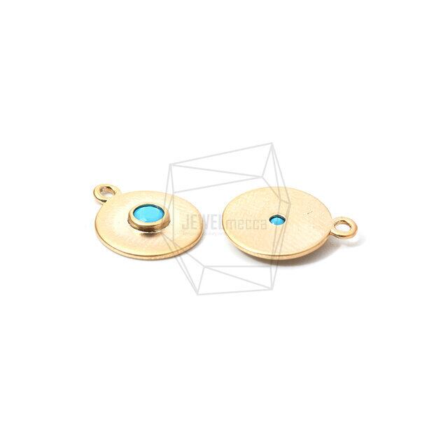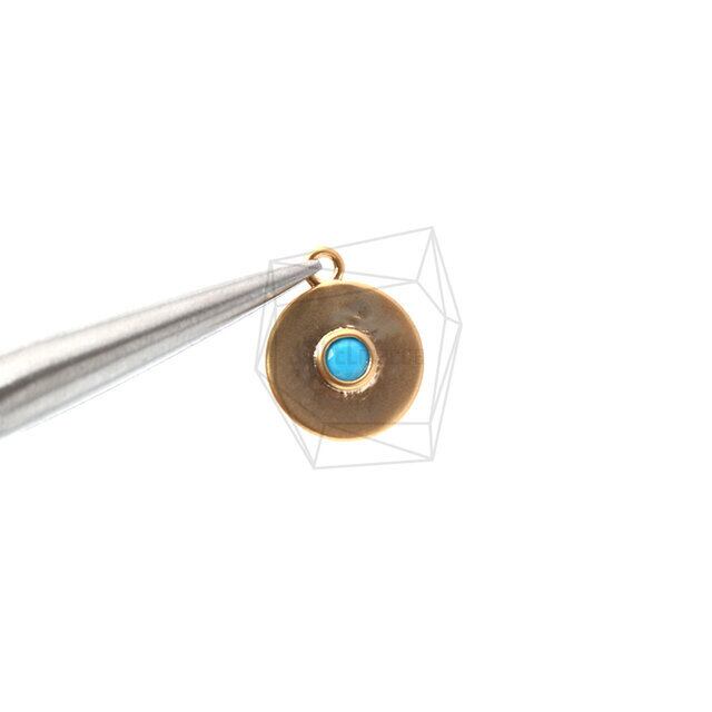 PDT-1948-MG/2PCS/Round Turquoise Pendant/10mm X 12mm/Matte Gold Plated Over Brass,Turquoise