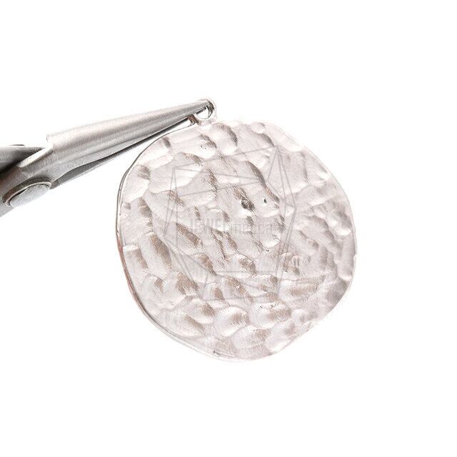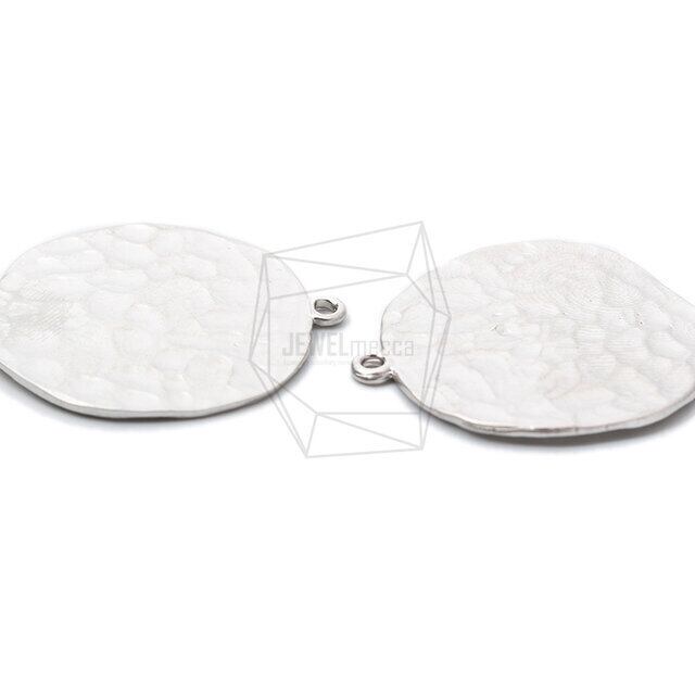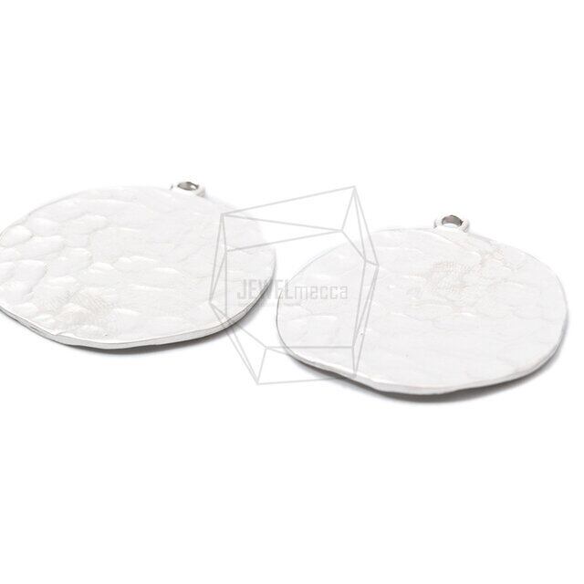 PDT-1949-MR/2PCS/Round Hammered Pendant/33mm X 35mm/Matte Rhodium Plated Over Brass