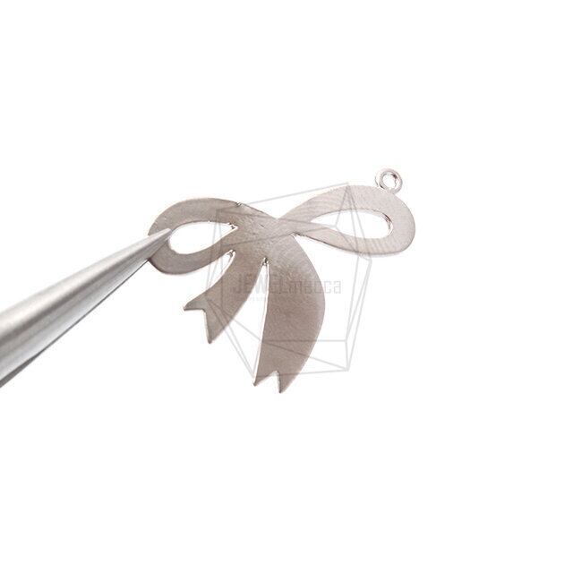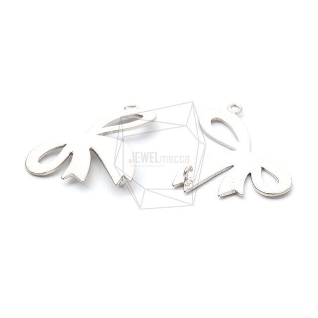 PDT-1954-MR/2PCS/Ribbon Pendant/26mm X 20mm/Matte Rhodium Plated Over Brass